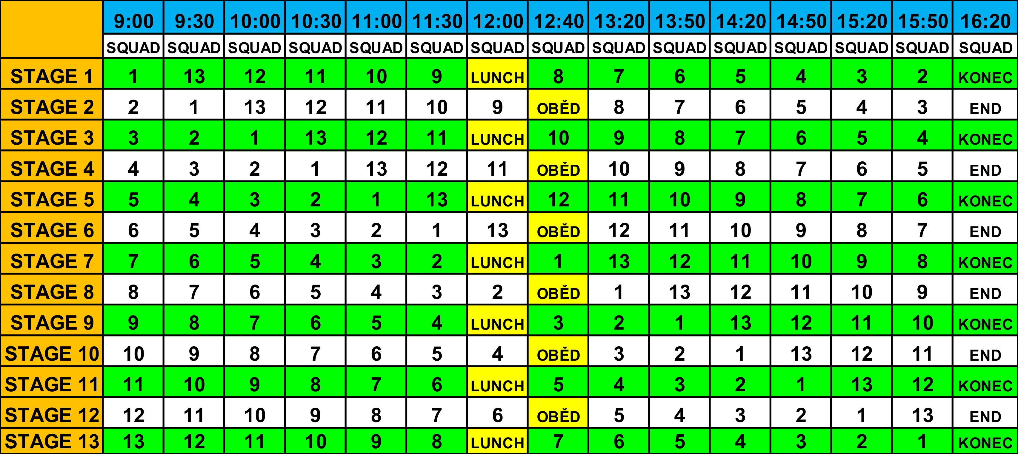 Časový rozpis závodu